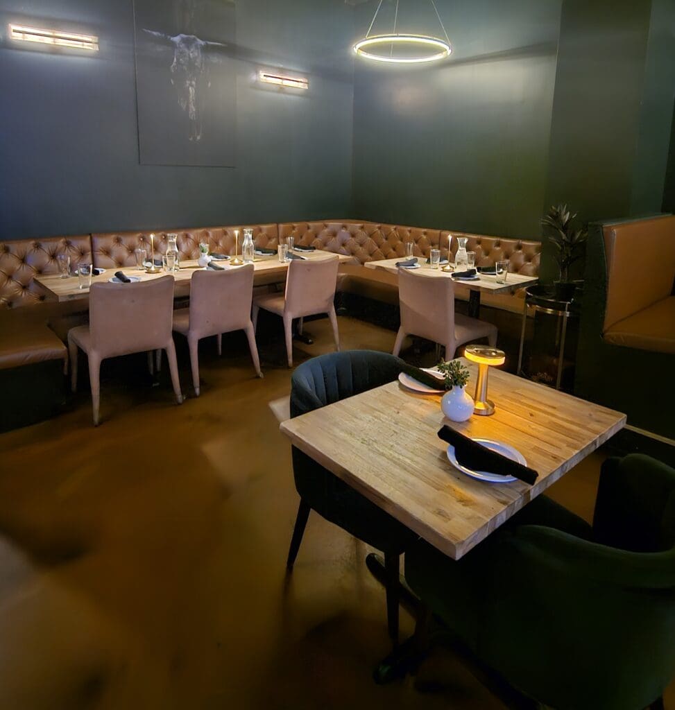 With a cozy footprint and moody ambiance, it’s perfect for close-knit dinners, cocktail gatherings, and discreet celebrations.